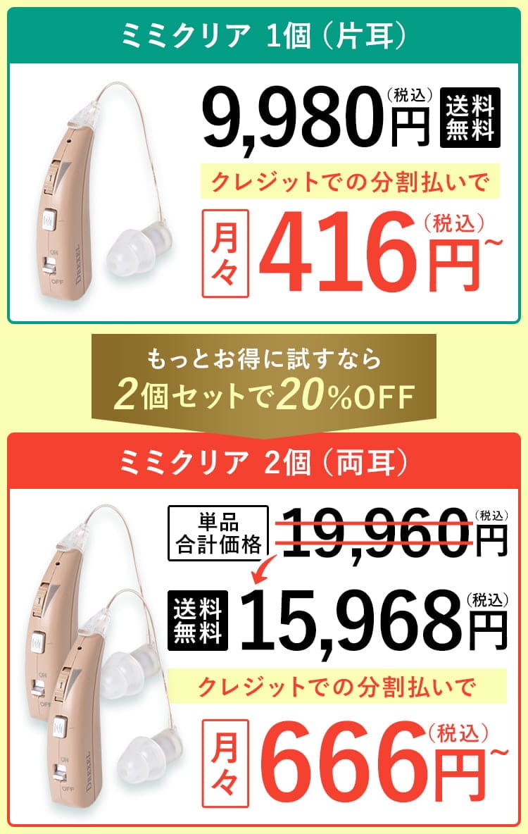 ミミクリアを一番お得に試したいなら、20%OFFで購入できる2個セットがおすすめ!