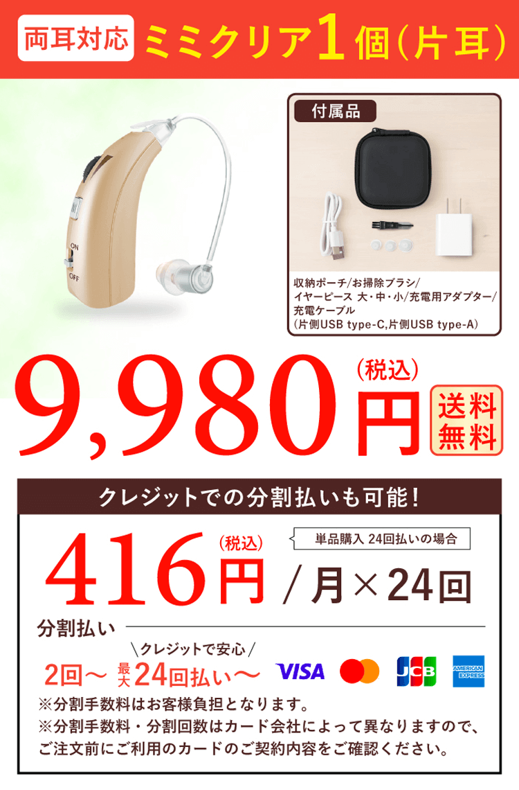 補聴器だと約35万円もかかりますが、月々416円~なら試しやすいですよね。